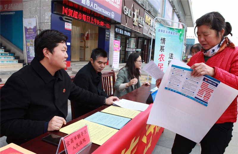 12月4日在猇亭国贸超市门口,猇亭法院组织部分干警参与了国家宪法日系列法治宣传教育活动。