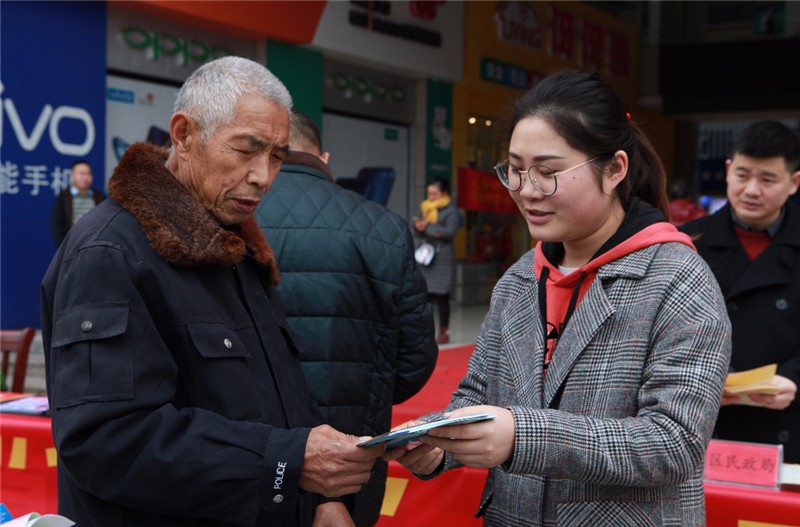 宣讲活动现场,猇亭法院设立了咨询台、悬挂横幅,干警通过发放法律资料、现场讲解等方式,积极向来往行人进行法制宣传,耐心解答群众提出的法律问题,不少群众拿到宣传资料后便认真阅读起来,对于群众现场咨询,法院工作人员一一予以耐心地解答。